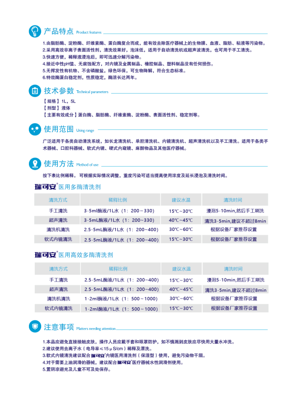 瑞可安醫用多酶清洗劑/瑞可安醫用高效多酶清洗劑