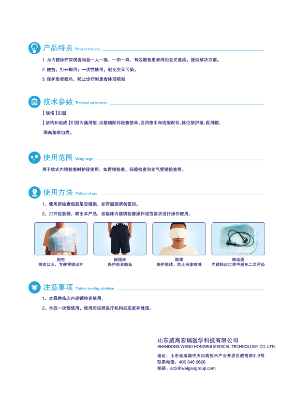 1、為內鏡診療實現各物品一人一換、一用一棄,有效避免患者間的交叉感染,提供解決方案。